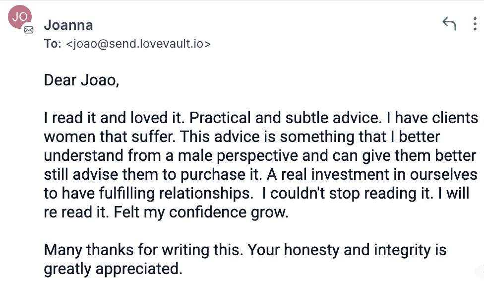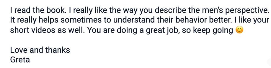 Whether it’s through my book or other products about understanding men, it simply doesn’t matter.